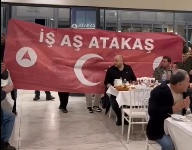 Konuşma, çalışanların yoğun alkışları ve “İş, Aş Atakaş” yazılı Türk bayraklı pankartların açılmasıyla sona erdi.