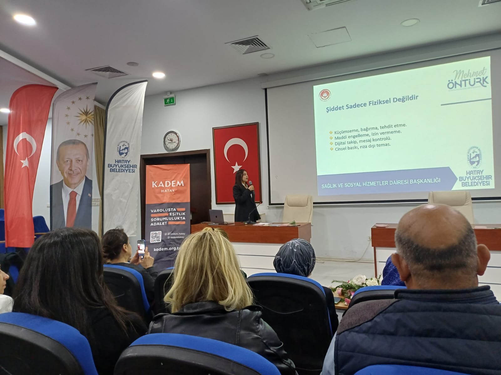 Büyükşehir Belediyesi uzman psikologları şiddet döngüsü ve etkilerini, KADEM İl Müftülüğü temsilcileri din açıdan şiddet sorununu, KADEM’in avukatı ise şiddetin hukuksal karşılığını ve başvuru süreçlerini aktardı.
